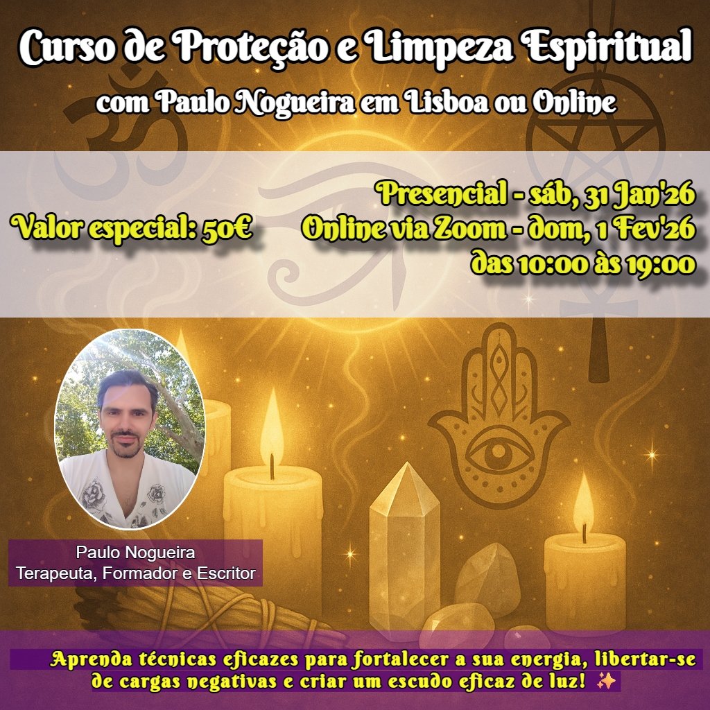 – sábado, 31 Janeiro’26 das 10:00 às 19:00 (presencial no espaço Paulo Nogueira Terapias, Lisboa) – restam 12 vagas
